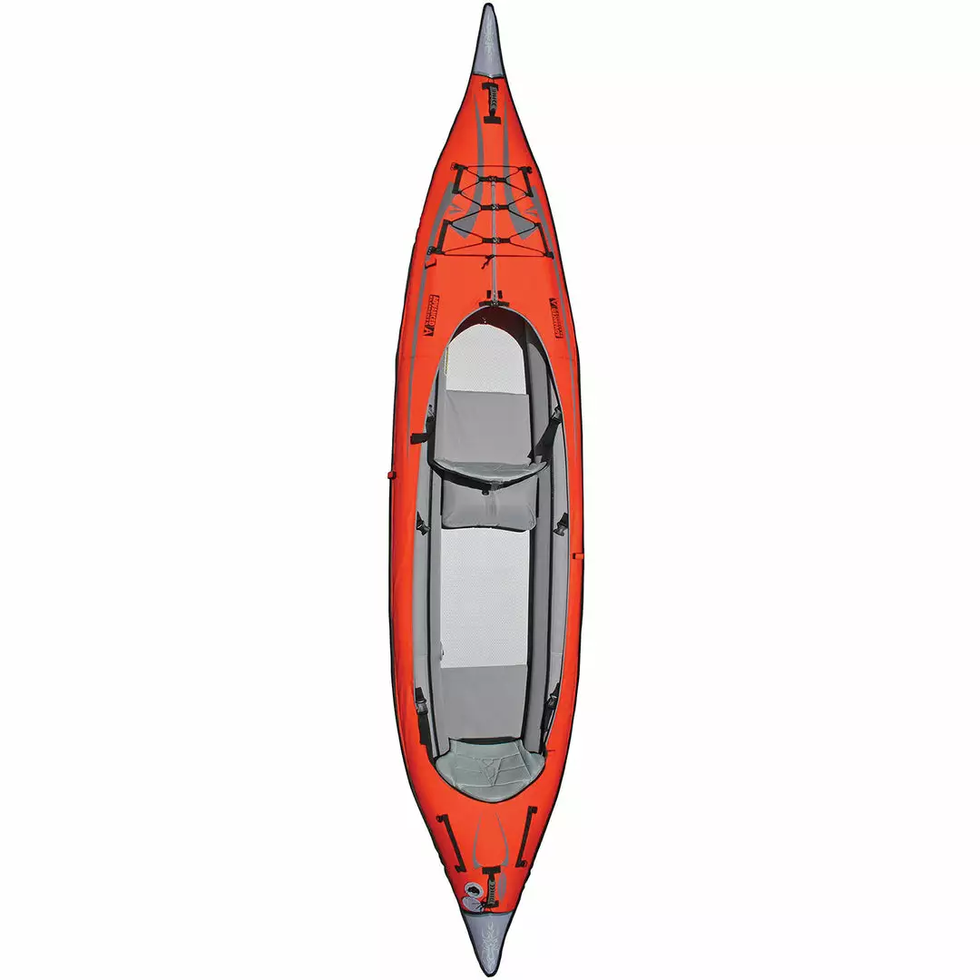 Take it to the next level with the all new AdvancedFrame Convertible Elite! A fifteen foot kayak that can be paddled solo or tandem, The Convertible Elite combines our aluminum rib-frame technology in the bow and stern, and rigid Drop-stitch technology in the floor, to provide paddling performance that rivals that of a hard-shell kayak. The versatile open deck design can be converted to a closed deck kayak in a matter of seconds by simply zipping in the optional single or double deck conversions and the upgraded lumbar seats provide comfort for hours of paddling!550